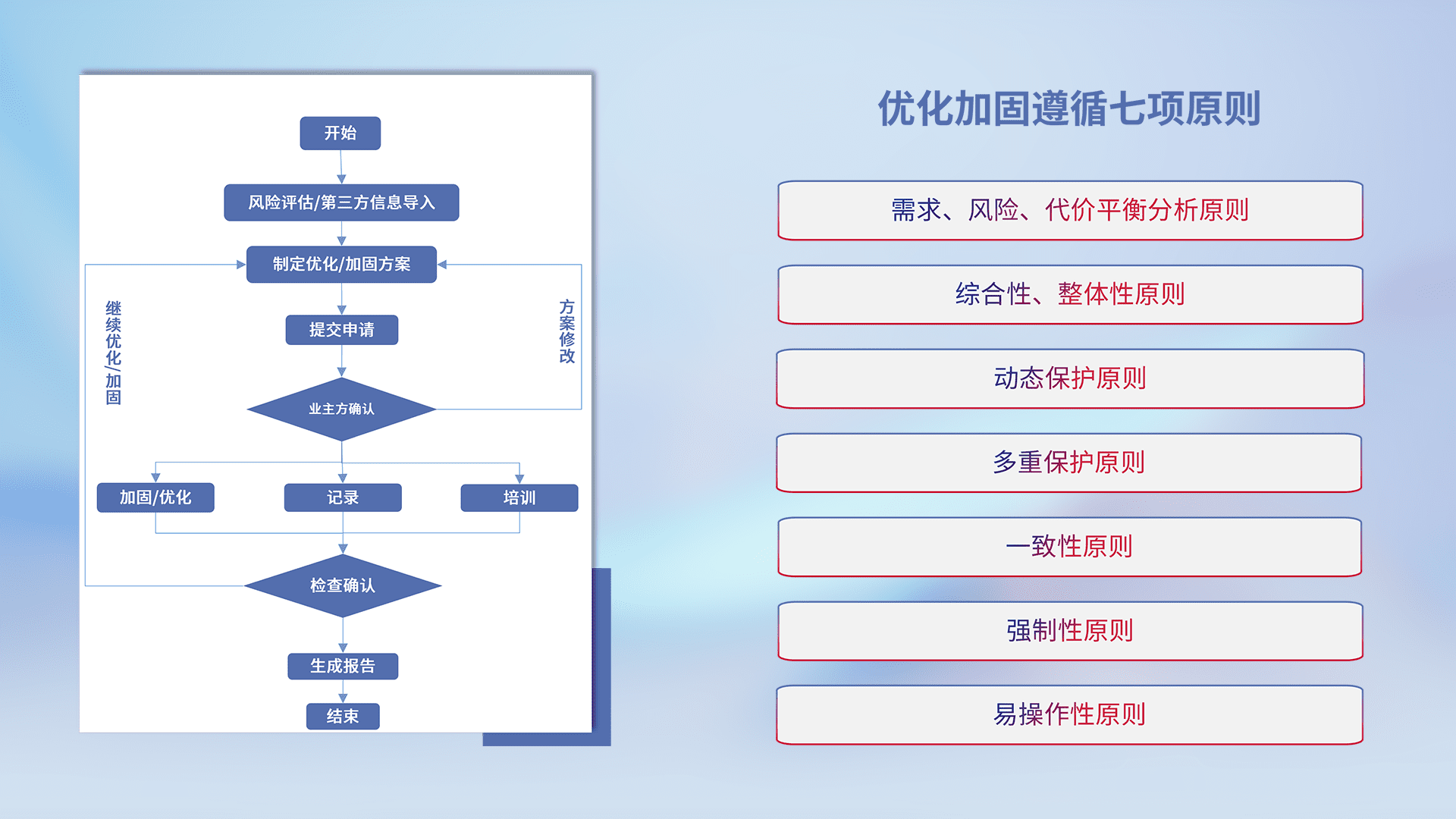 最大程度利用现有资产,,,对评估发现的问题进行封堵与整改,,,,防止漏洞被利用,,提升整体网络安全性,,,为客户带来高标准的优化加固服务。。