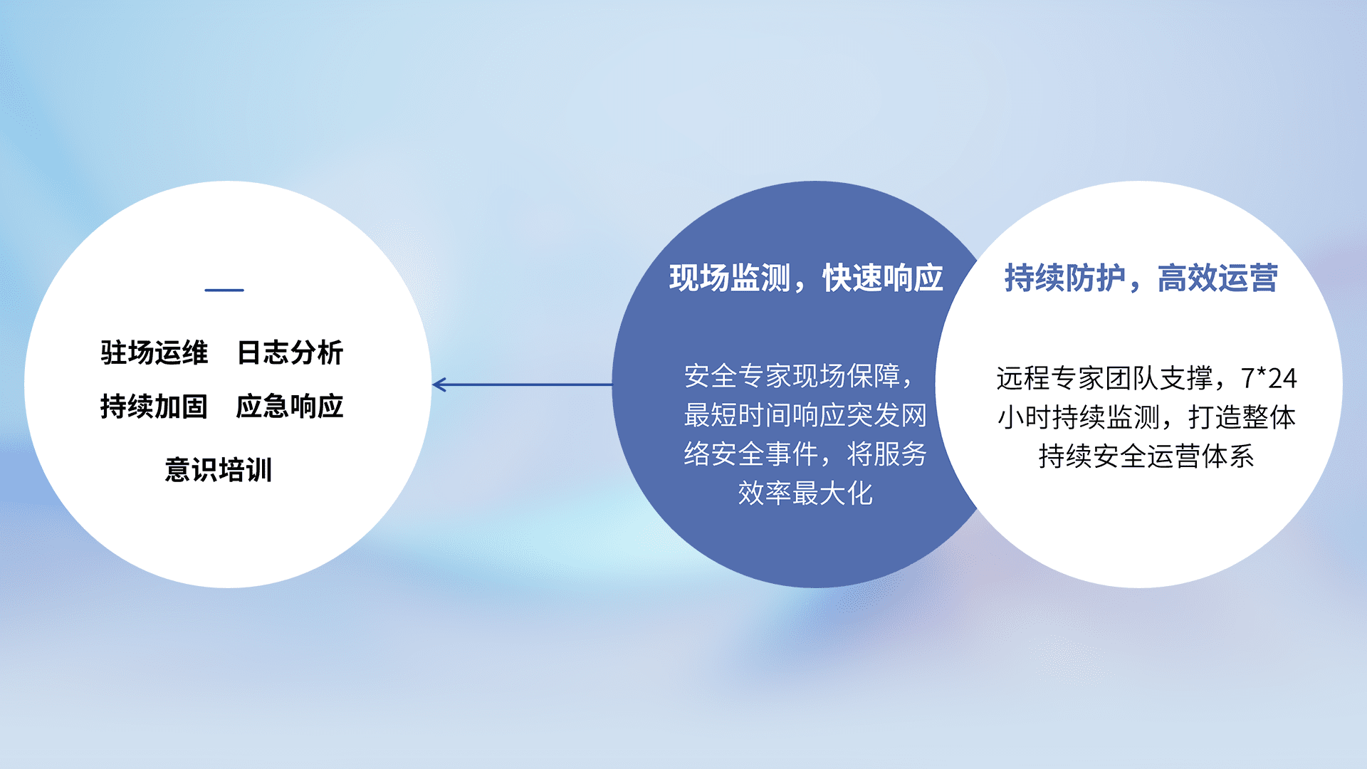 7X24小时持续监测安全事件,保持安全策略有效性,降低资产脆弱性风险,,精准拦截黑客攻击,,减少被黑客利用的机会,,第一时间遏制,,降低损失。。。。